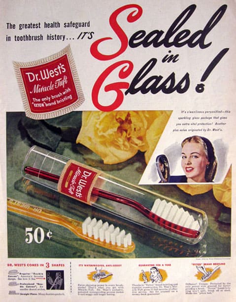 La vera rivoluzione arrivò nel 1938 con l’invenzione delle setole in nylon da parte della DuPont. Più igieniche e resistenti delle setole animali, favorirono l’uso quotidiano dello spazzolino in tutto il mondo. Dopo la Seconda guerra mondiale, grazie alle campagne di salute pubblica e all’influenza delle abitudini dei soldati americani, lo spazzolino divenne indispensabile nelle case occidentali.